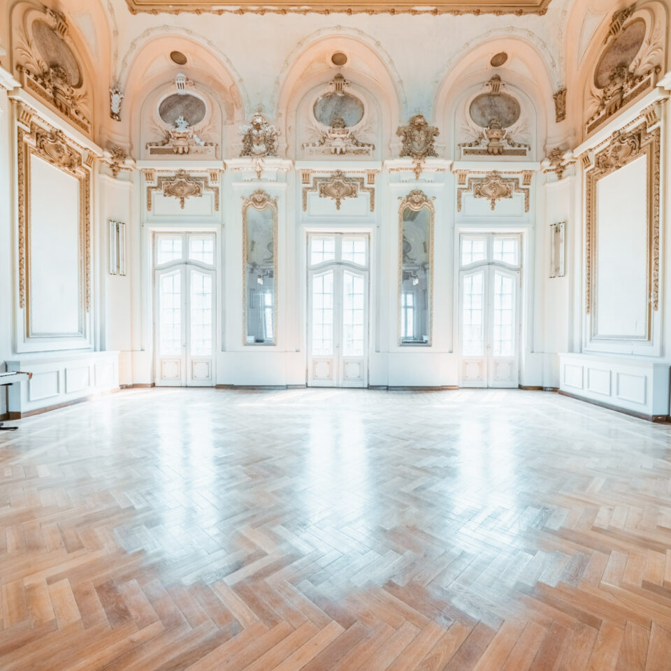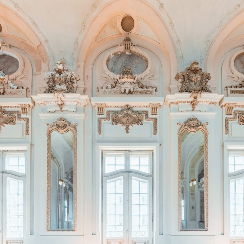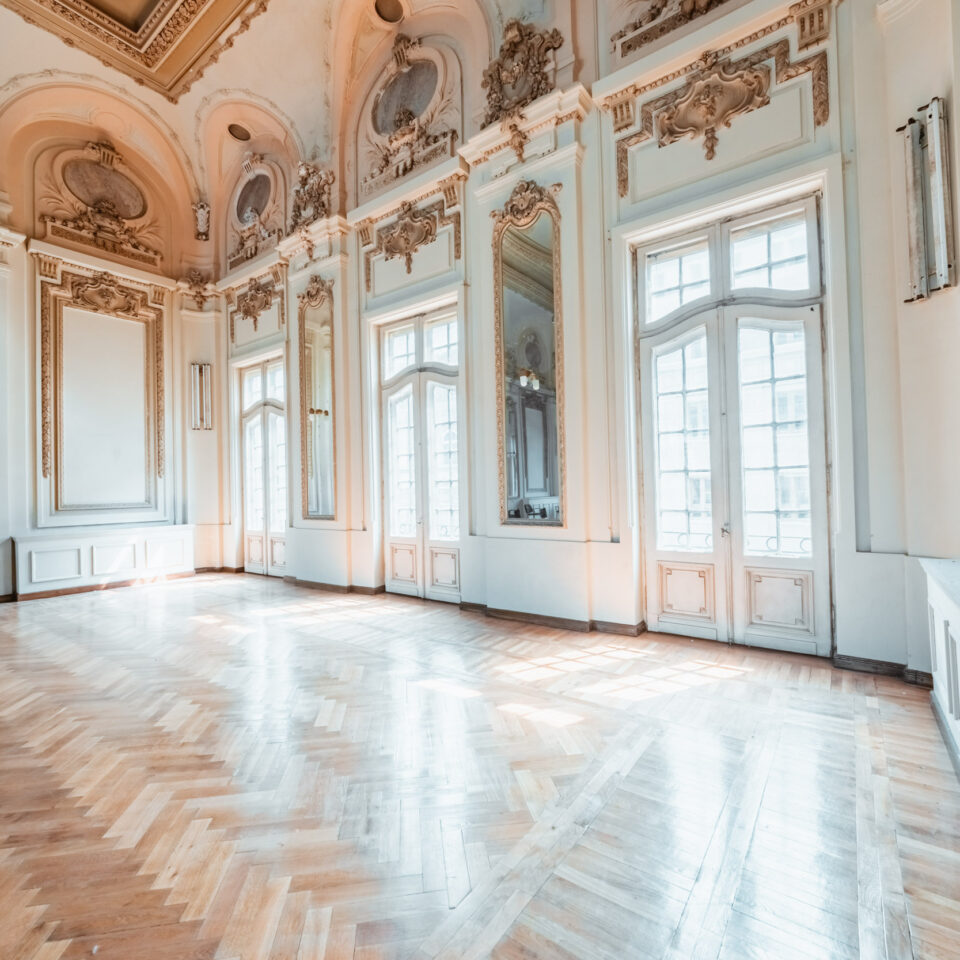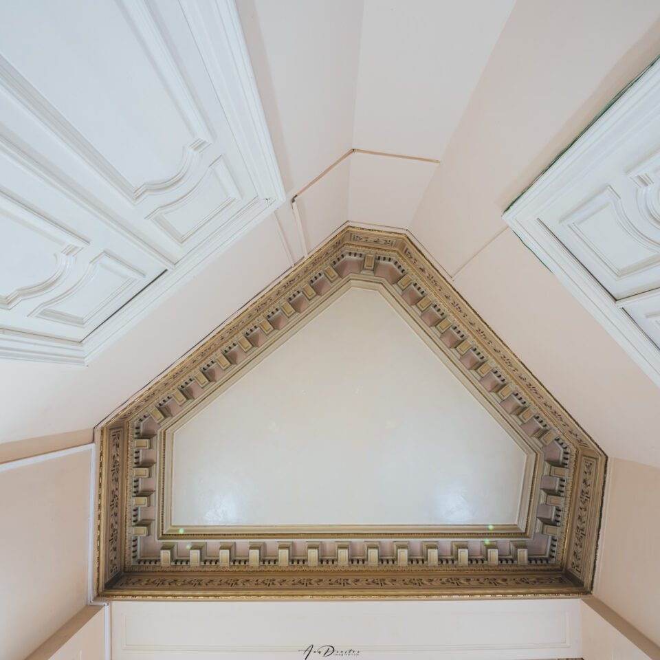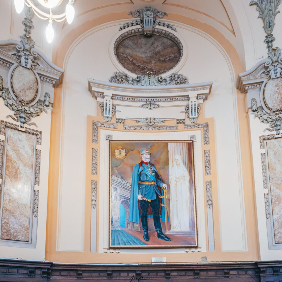 Fosta sala de consiliu are plafonul si cele patru panouri de deasupra usilor decorate în maniera pictorului Boucher.